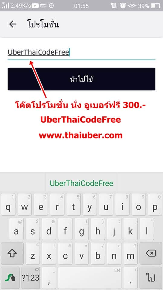 โค้ดสำหรับนั่งฟรี 300 บาท UberThaiCodeFree