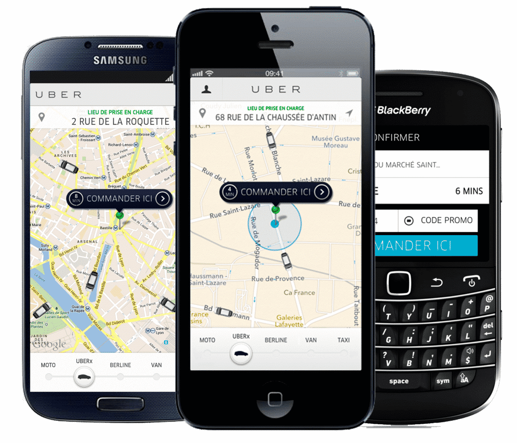 อูเบอร์ Uber เรียกใช้งานได้โดยแอพพลิเคชั่น สามารถมาร์คจุดที่ต้องการให้ไปรับได้แม้จะอยู่ที่ไหนก็ตาม เพียงให้อยู่ภายในเขตพื้นที่บริการของ Uber พร้อมทั้งระบุสถานที่ปลายทางได้ทุกที่ผ่านในแอพเดียว